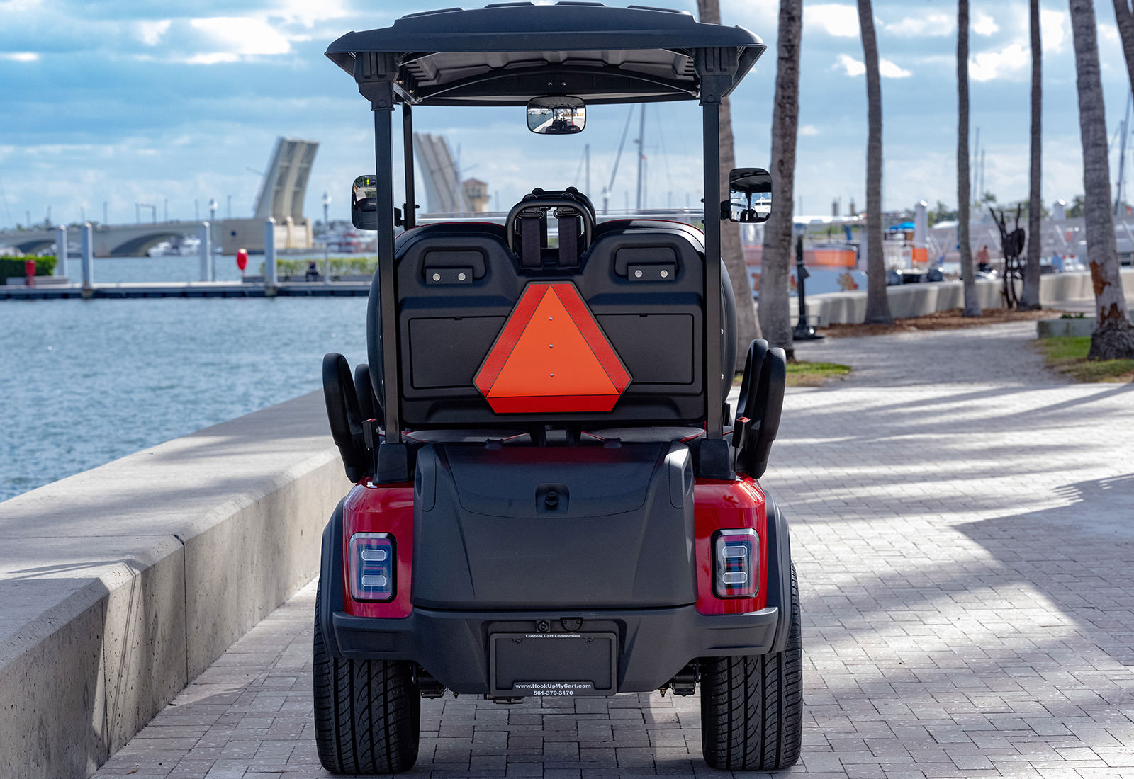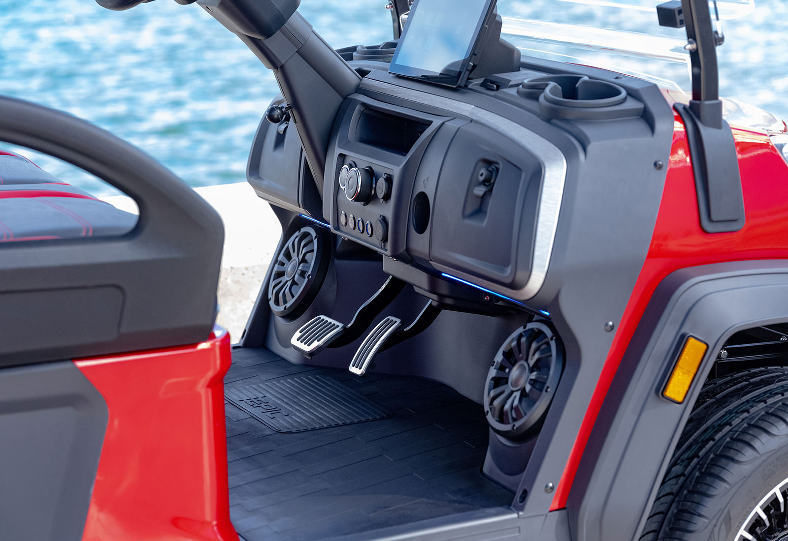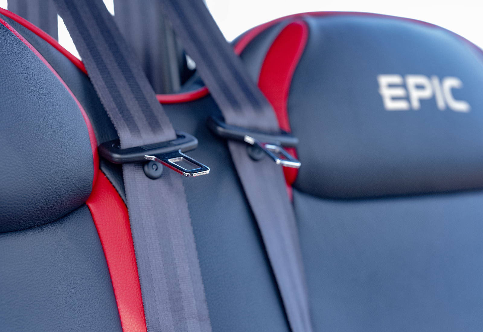 Furnished with every imaginable feature, the forward-facing four-seater Epic E40FX comes in six stylish colors and two height options. Premium 14” wheels and street-ready tires provide a solid foundation for every journey on every terrain, no matter what lift height is selected. With an abundance of storage, superior built-in marine-grade sound system and speakers, and stunning accent lighting, this Epic E40FX golf cart illuminates the possibilities for fun and adventure.