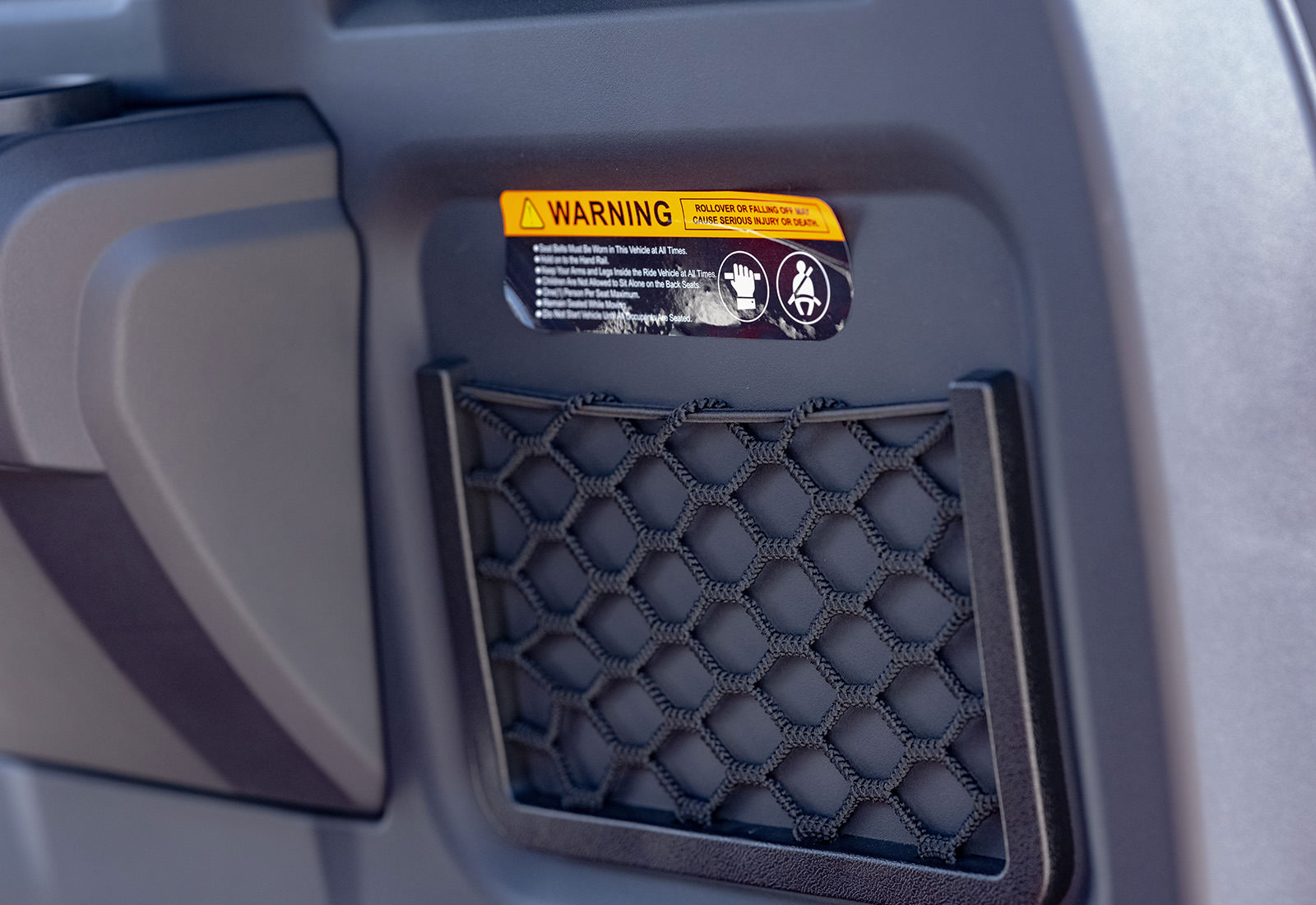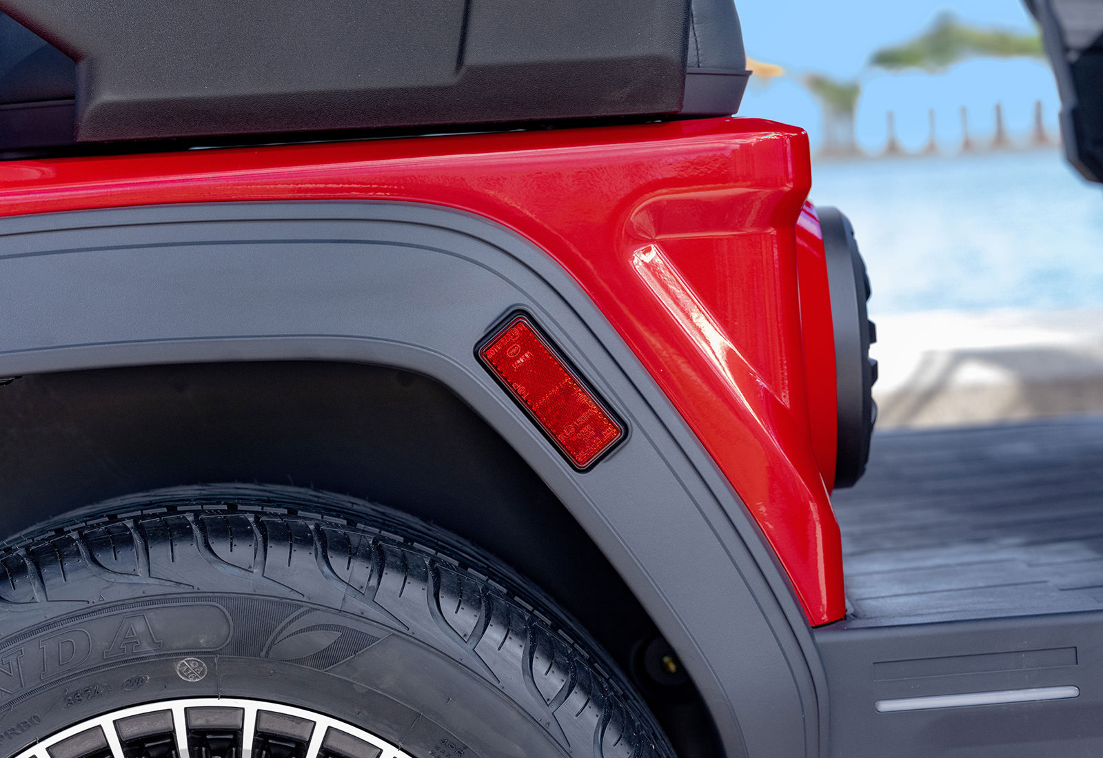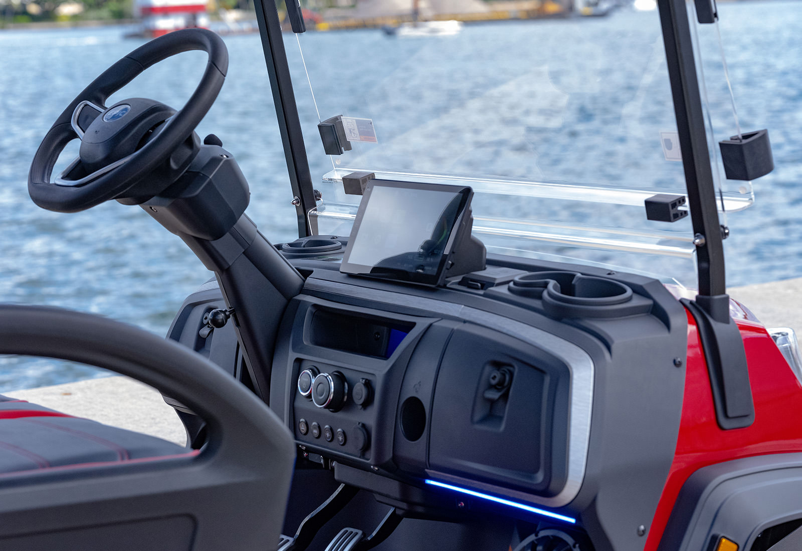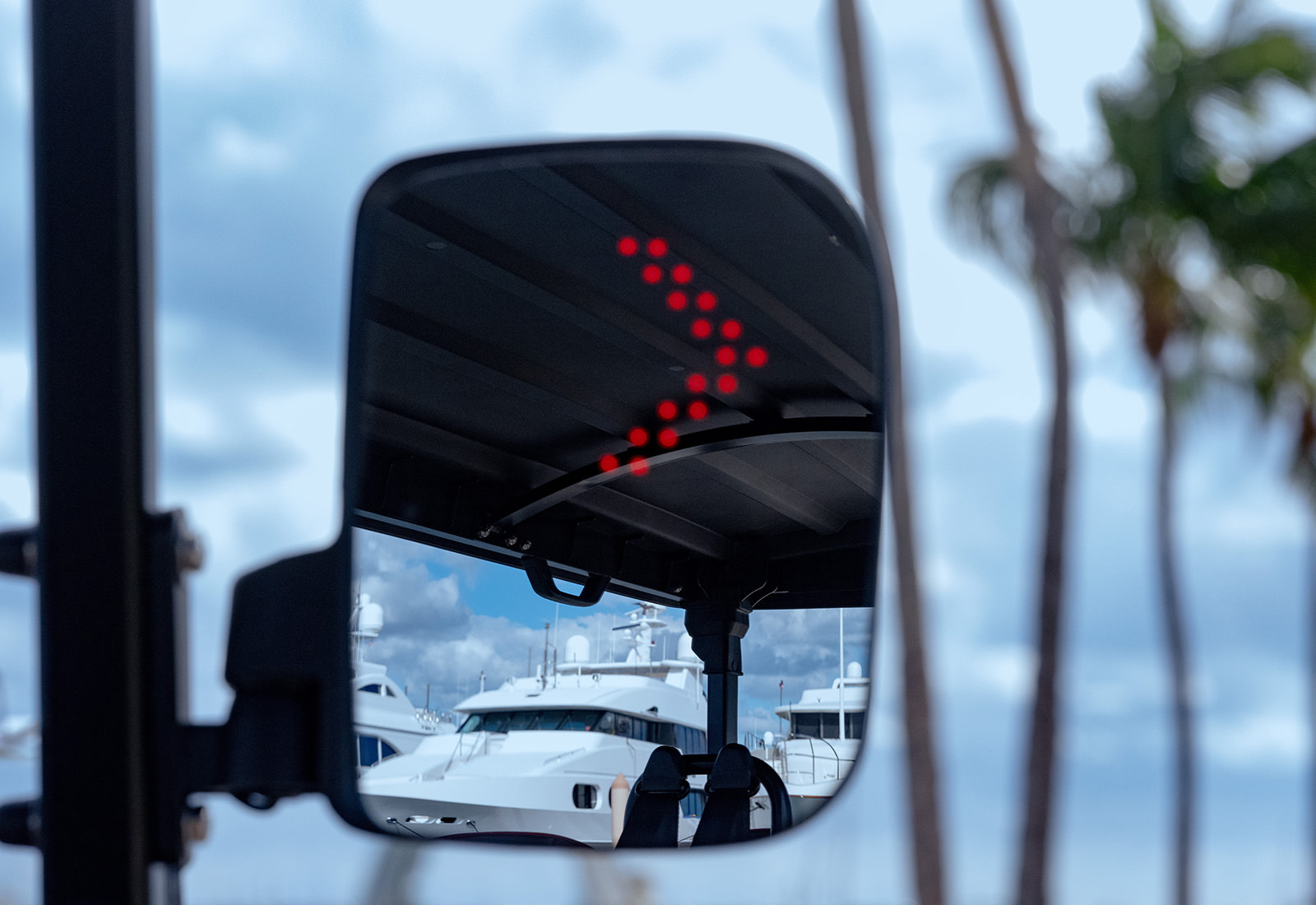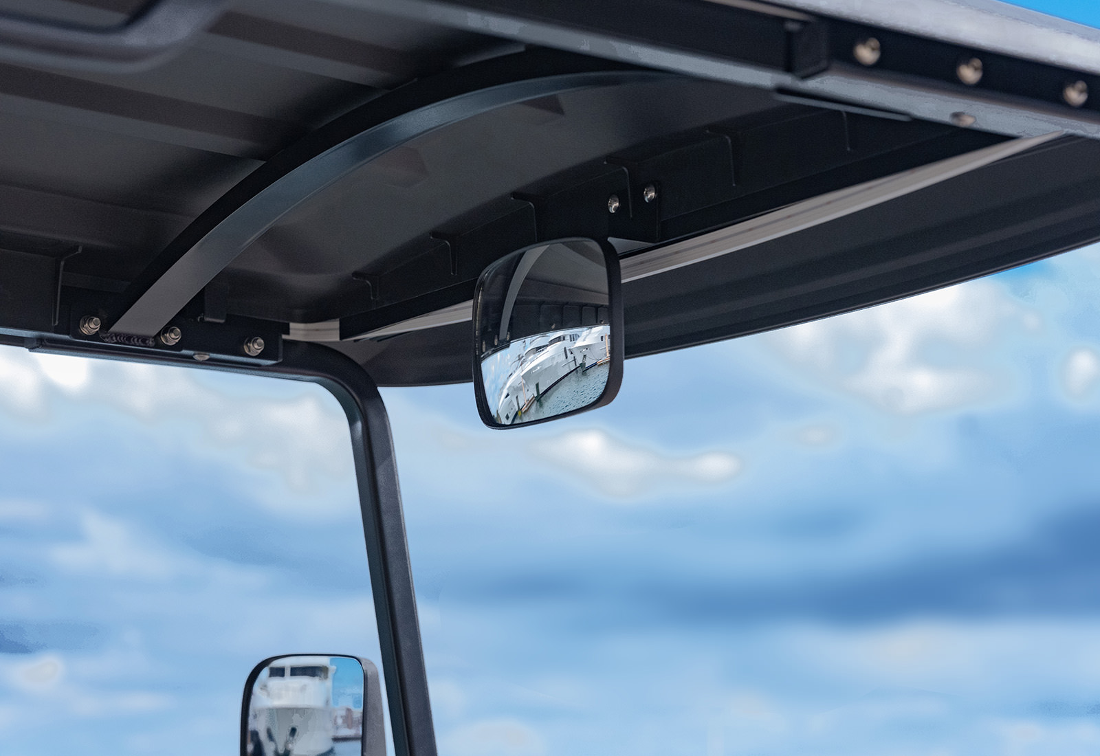 - Safety 3-Point Seat Belt Restraints, Rear Grab Bar, Reverse Buzzer, Charge Indicator, Back-up Camera, Gauges, Mirrors with Dual Sided Lit Turn Signals, Hazards, Horn