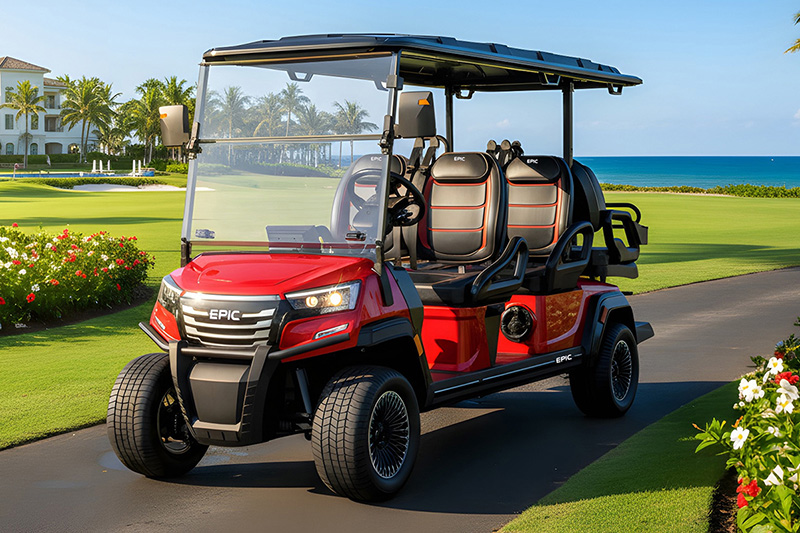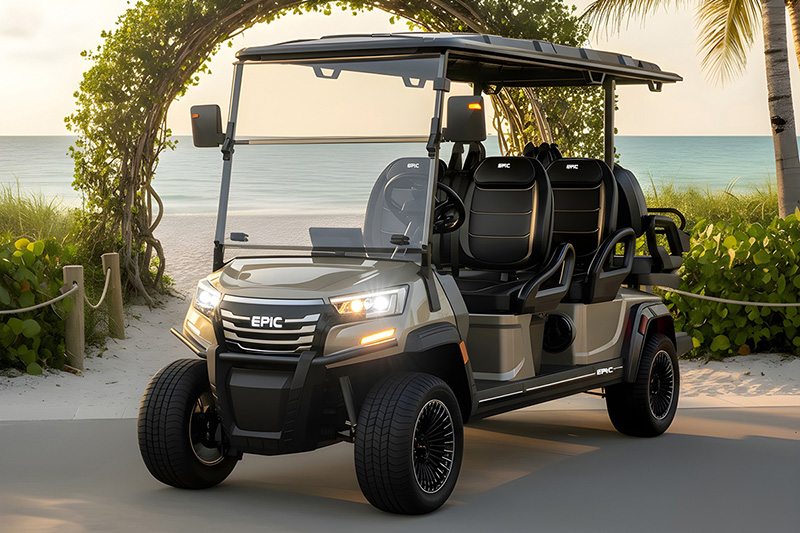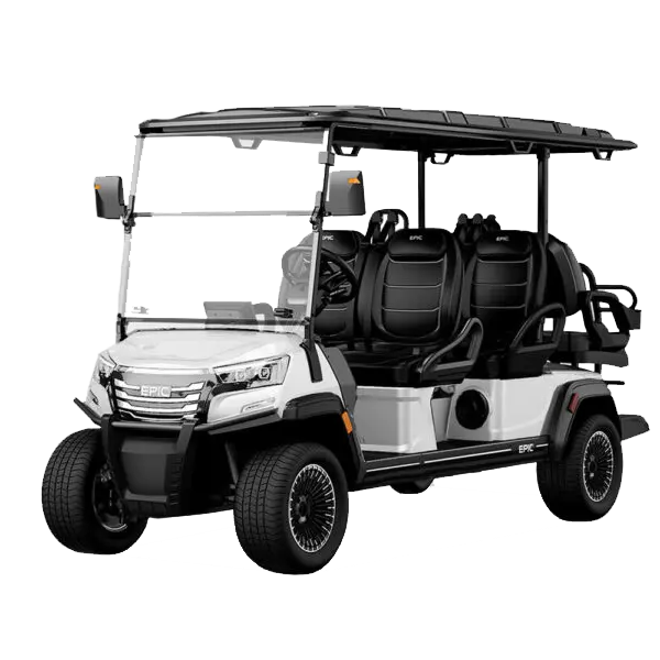 The Epic E60FX Golf Cart is the most incredible six-seater golf cart coming soon to an EPIC Carts dealer near you. Pre-order yours today!